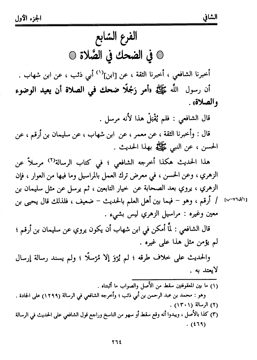 (3) كذا بالأصل، ويبدوا أنه وقع سقط أو سهو من الناسخ، وراجع قول الشافعي على الحديث في الرسالة (469).