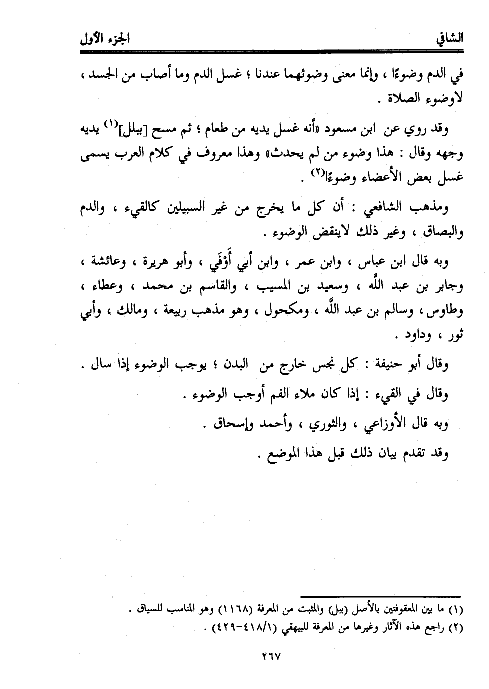 ومذهب الشافعي: أن كل ما يخرج من غير السبيلين كالقيء، والدم والبصاق، وغير ذلك لا ينقض الوضوء.
