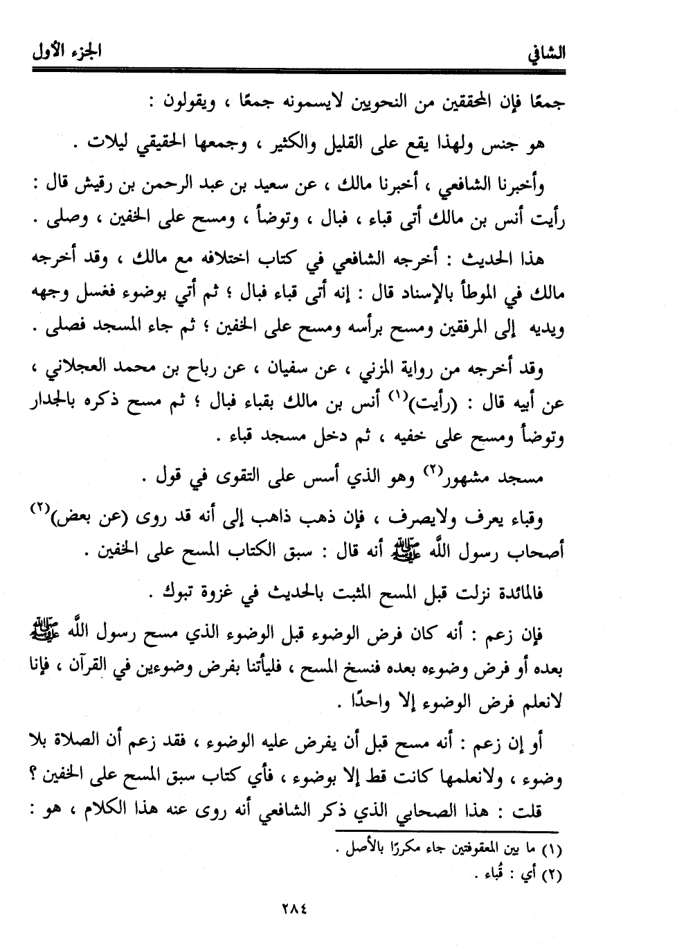وقباء يعرف ولا يصرف، فإن ذهب ذاهب إلى أنه قد روى (عن بعض) (2) أصحاب رسول اللَّه - صلى الله عليه وسلم - أنه قال: سبق الكتاب المسح على الخفين.