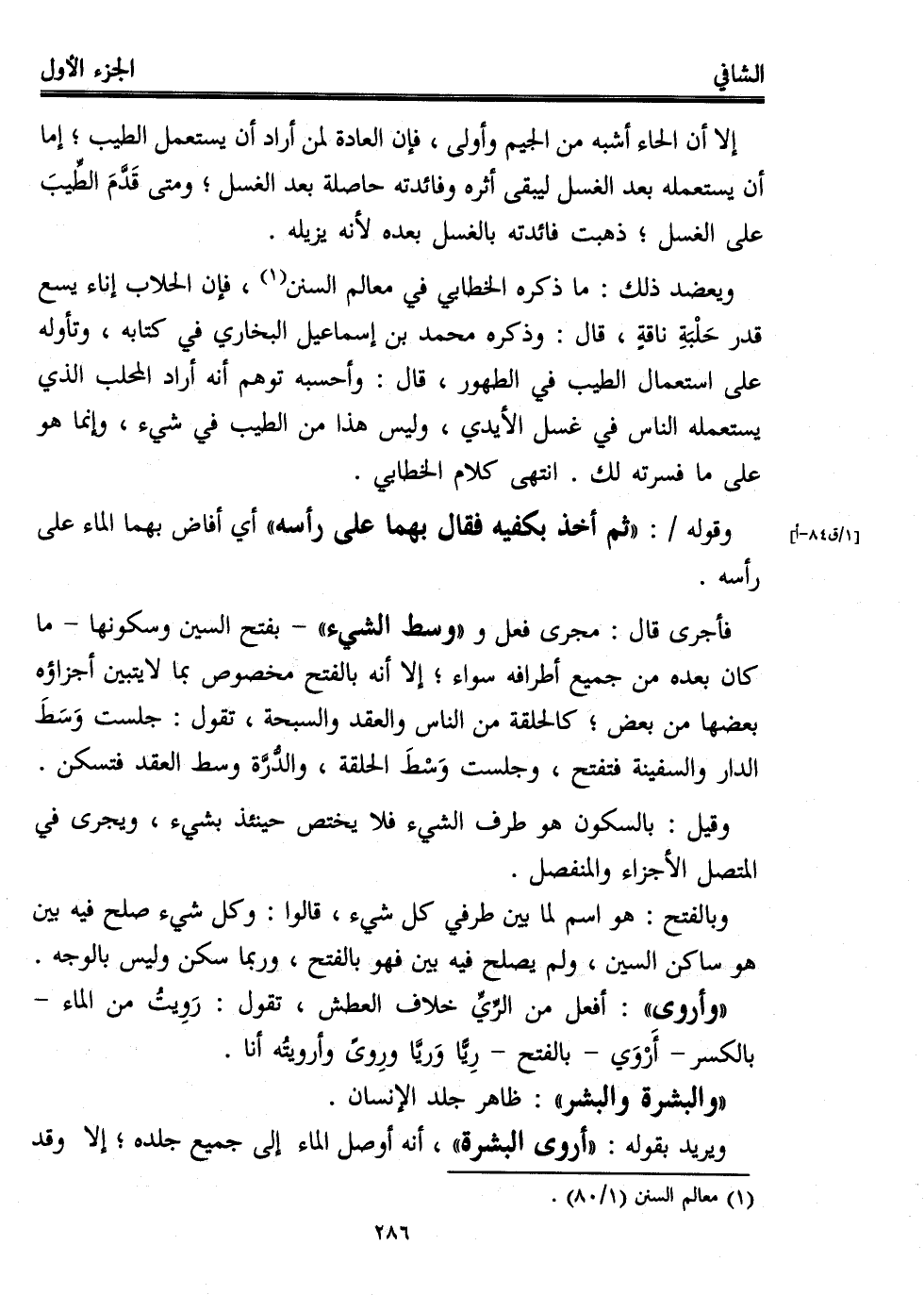 ويعضد ذلك: ما ذكره الخطابي في معالم السنن (¬1)، فإن الحلاب إناء يسع قدر حَلْبَةِ ناقةٍ، قال: وذكره محمد بن إسماعيل البخاري في كتابه، وتأوله على استعمال الطيب في الطهور، قال: وأحسبه توهم أنه أراد المحلب الذي يستعمله الناس في غسل الأيدي، وليس هذا من الطيب في شيء، وإنما هو