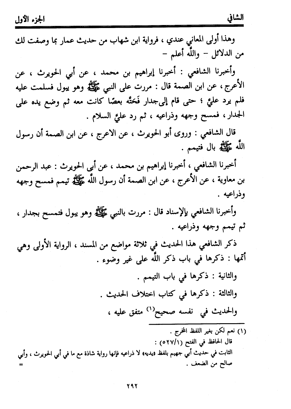 وأخبرنا الشافعي بإلإسناد قال: مررت بالنبي - صلى الله عليه وسلم -وهو يبول فتمسح بجدار، ثم تيمم وجهه وذراعيه.