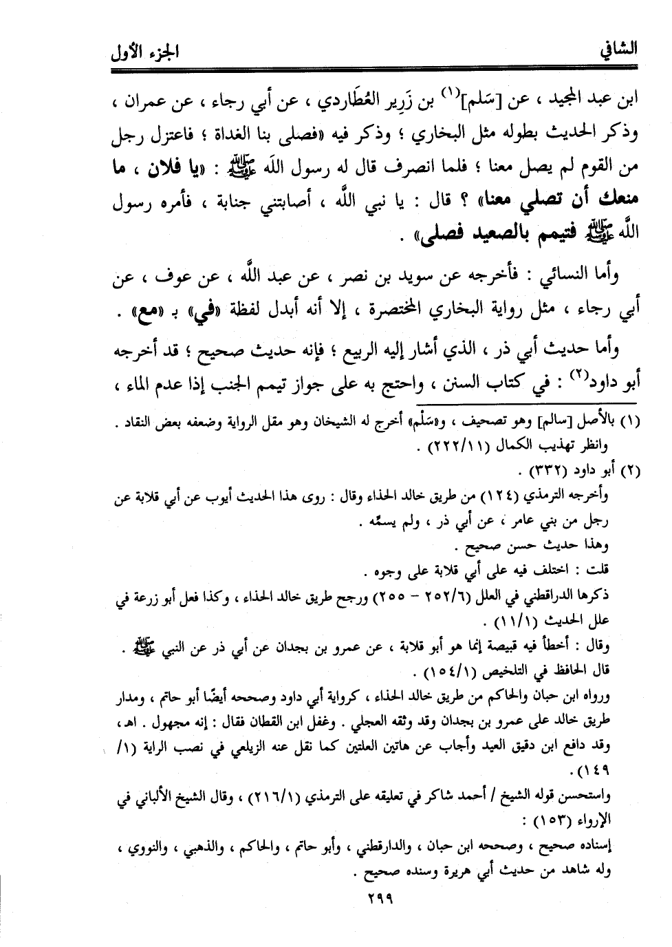 وأما حديث أبي ذر، الذي أشار إليه الربيع، فإنه حديث صحيح؛ قد أخرجه أبو داود (¬2): في كتاب السنن, واحتج به على جواز تيمم الجنب إذا عدم الماء،