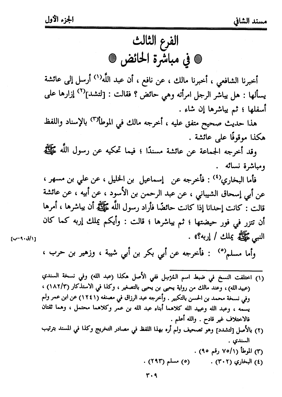 وقد أخرجه الجماعة عن عائشة مسندًا؛ فيما تحكيه عن رسول اللَّه - صلى الله عليه وسلم - ومباشرة نسائه.