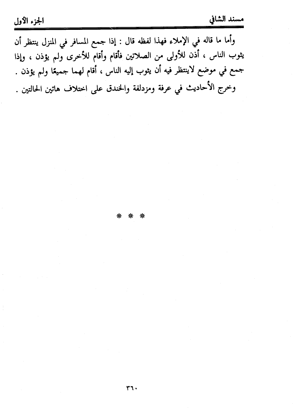 وأما ما قاله في الإملاء فهذا لفظه قال: إذا جمع المسافر في المنزل ينتظر أن يثوب الناس، أذن للأولى من الصلاتين فأقام وأقام للأخرى ولم يؤذن، وإذا جمع في موضع لا ينتظر فيه أن يثوب إليه الناس، أقام لهما جميعًا ولم يؤذن.
