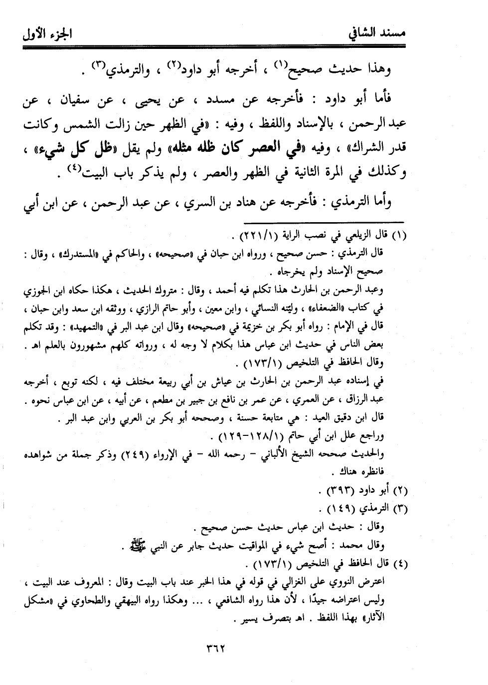 فأما أبو داود: فأخرجه عن مسدد، عن يحيى، عن سفيان، عن عبد الرحمن، بالإسناد واللفظ، وفيه: "في الظهر حين زالت الشمس وكانت قدر الشراك"، وفيه " في العصر كان ظله مثله" ولم يقل "ظل كل شيء"، وكذلك في المرة الثانية في الظهر والعصر، ولم يذكر باب البيت (¬4).