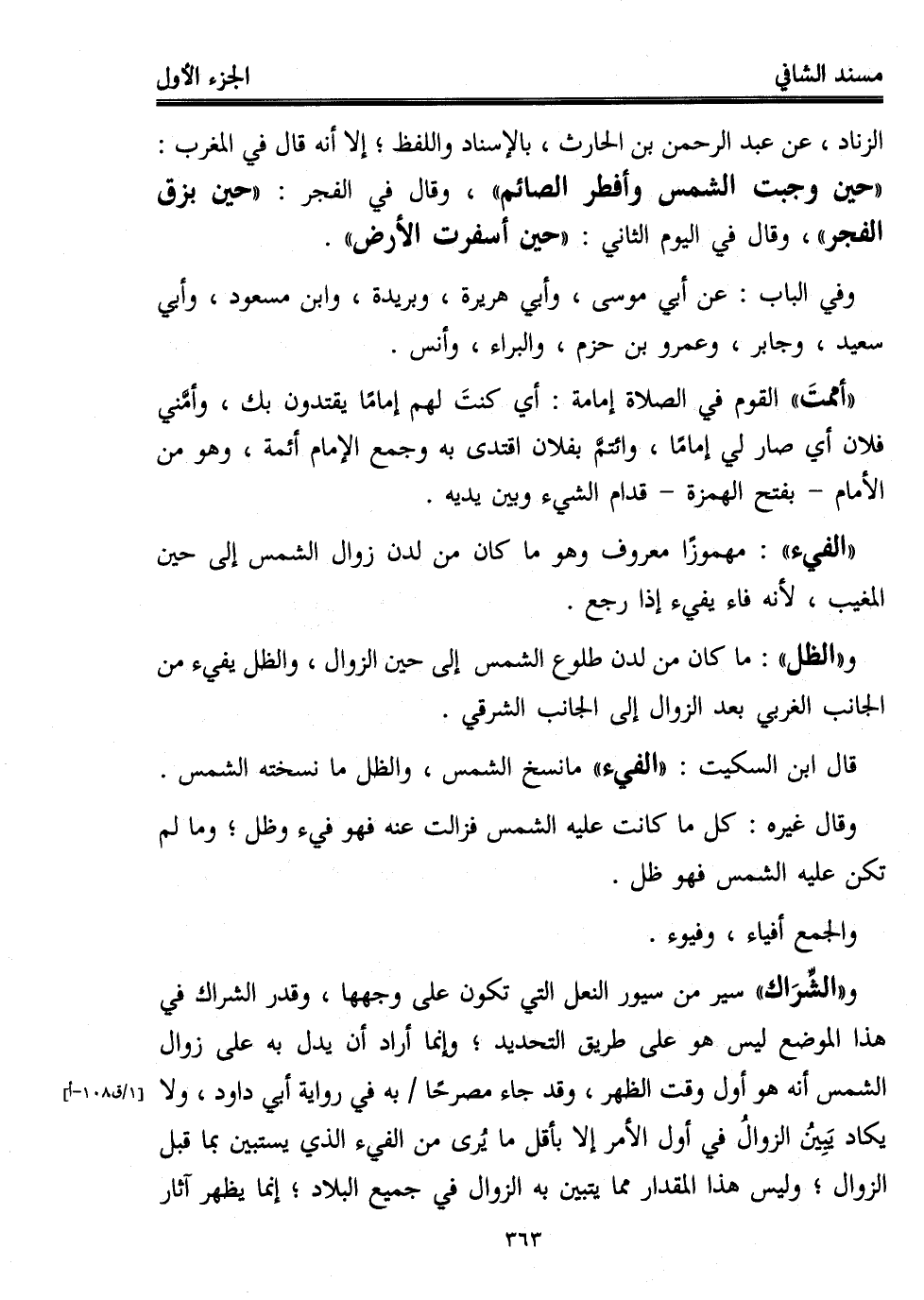 قال ابن السكيت: "الفيء" ما نسخ الشمس، والظل ما نسخته الشمس.