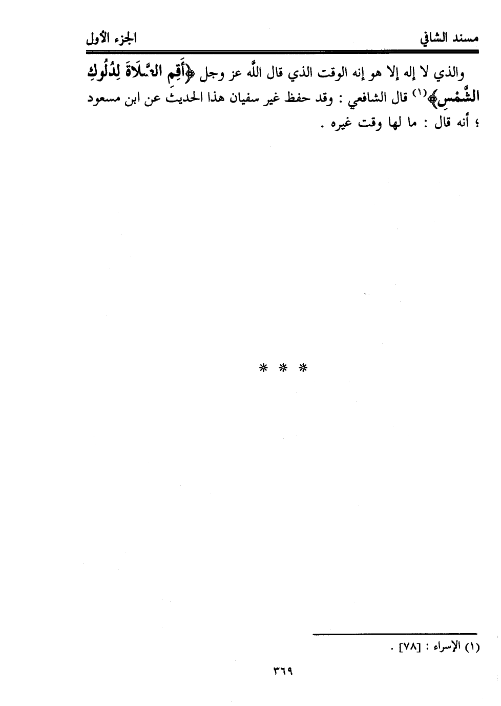 والذي لا إله إلا هو إنه الوقت الذي قال الله عز وجل {أَقِمِ الصَّلَاةَ لِدُلُوكِ الشَّمْسِ} (¬1) قال الشافعي: وقد حفظ غير سفيان هذا الحديث عن ابن مسعود؛ أنه قال: ما لها وقت غيره.