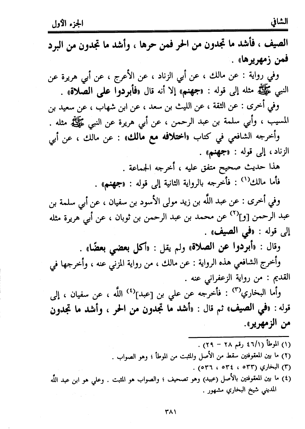 وأخرجه الشافعي في كتاب "اختلافه مع مالك": عن مالك، عن أبي الزناد، إلى قوله: "جهنم".