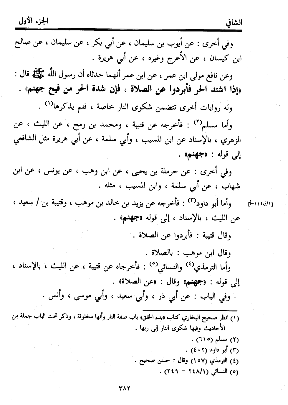 وأما الترمذي (¬4) والنسائي (¬5): فأخرجاه عن قتيبة، عن الليث، بالإسناد، إلى قوله: "جهنم" وقال: "عن الصلاة".