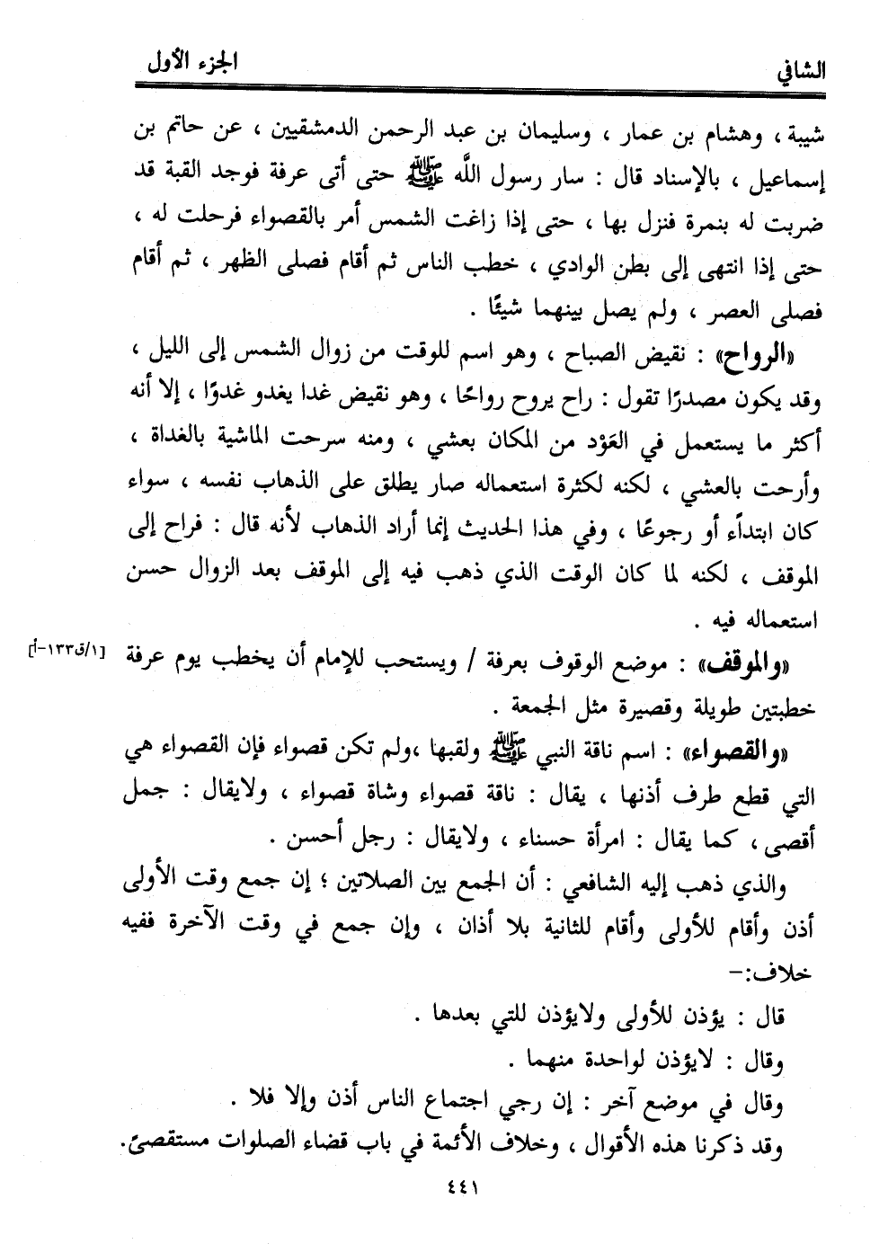 شيبة، وهشام بن عمار، وسليمان بن عبد الرحمن الدمشقيين، عن حاتم بن إسماعيل، بالإسناد قال: سار رسول اللَّه - صلى الله عليه وسلم - حتى أتى عرفة فوجد القبة قد ضربت له بنمرة فنزل بها، حتى إذا زاغت الشمس أمر بالقصواء فرحلت له، حتى إذا انتهى إلى بطن الوادي، خطب الناس ثم أقام فصلى الظهر، ثم أقام فصلى العصر، ولم يصل بينهما شيئًا.