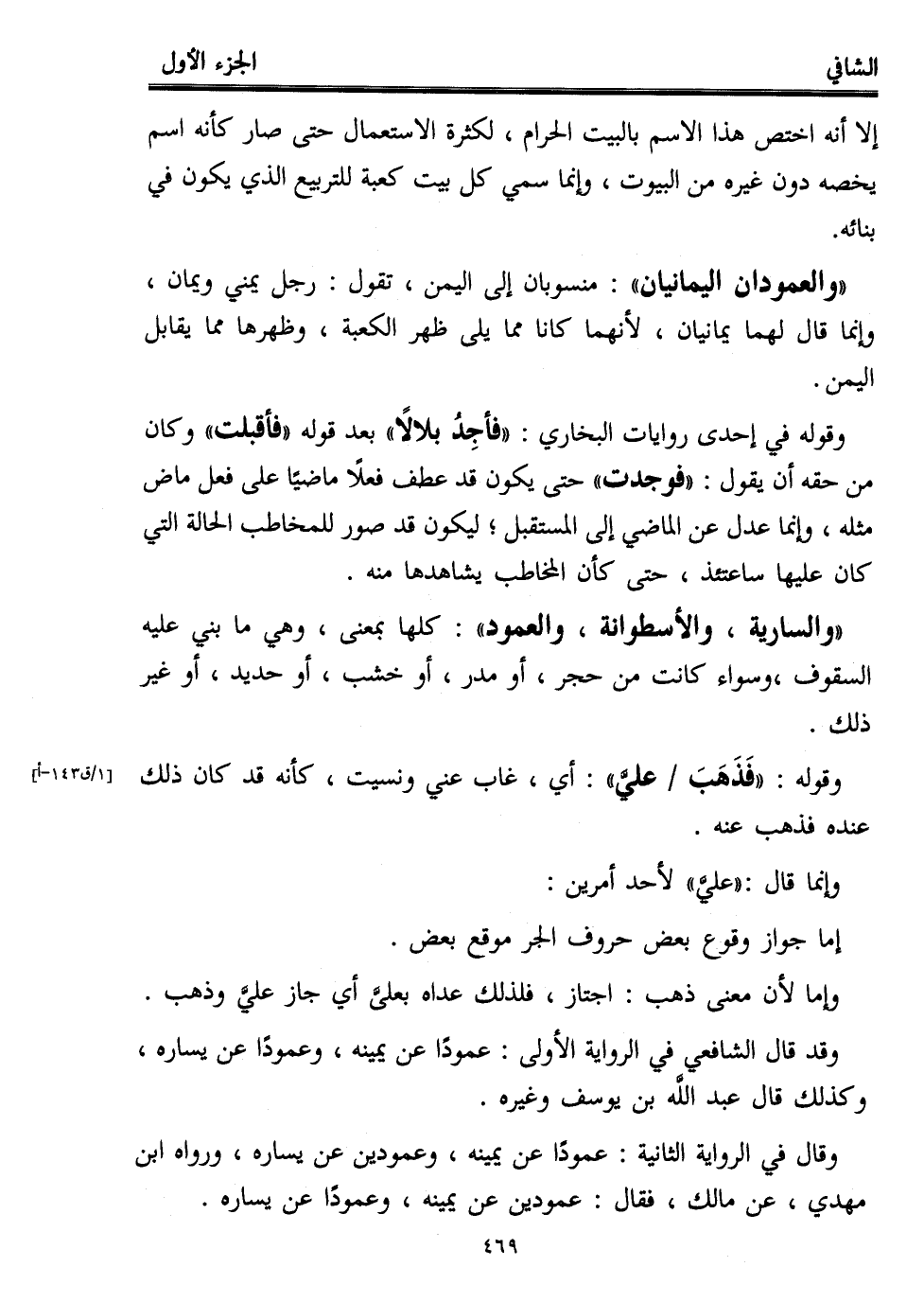 "والعمودان اليمانيان": منسوبان إلى اليمن، تقول: رجل يمني ويمان، وإنما قال لهما يمانيان، لأنهما كانا مما يلي ظهر الكعبة، وظهرها مما يقابل اليمن.