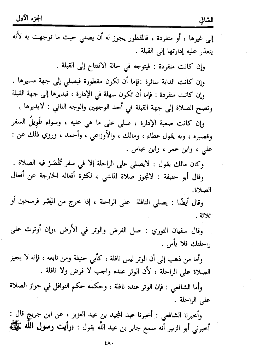 وأخبرنا الشافعي: أخبرنا عبد المجيد بن عبد العزيز، عن ابن جريج قال: أخبرني أبو الزبير أنه سمع جابر بن عبد اللَّه يقول: "رأيت رسول اللَّه - صلى الله عليه وسلم -