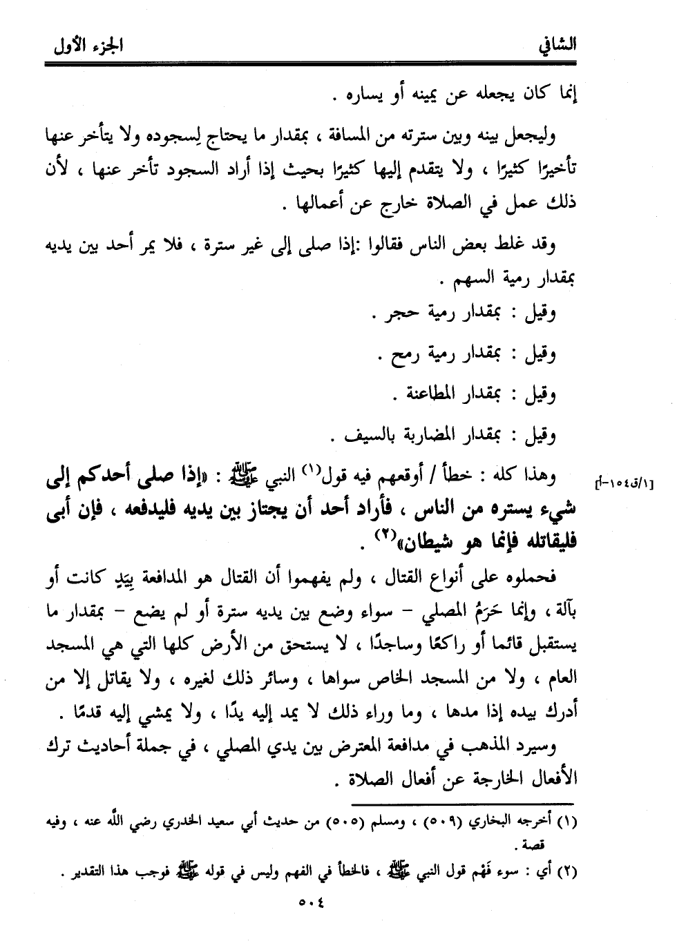 وهذا كله: خطأ أوقعهم فيه قول (¬1) النبي - صلى الله عليه وسلم -: "إذا صلى أحدكم إلى شيء يستره من الناس، فأراد أحد أن يجتاز بين يديه فليدفعه، فإن أبى فليقاتله فإنما هو شيطان" (¬2).