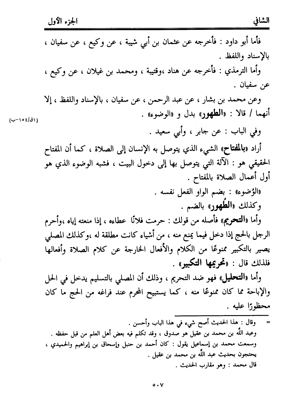 وعن محمد بن بشار، عن عبد الرحمن، عن سفيان، بالإسناد واللفظ، إلا أنهما قالا: "الطهور" بدل و"الوضوء".