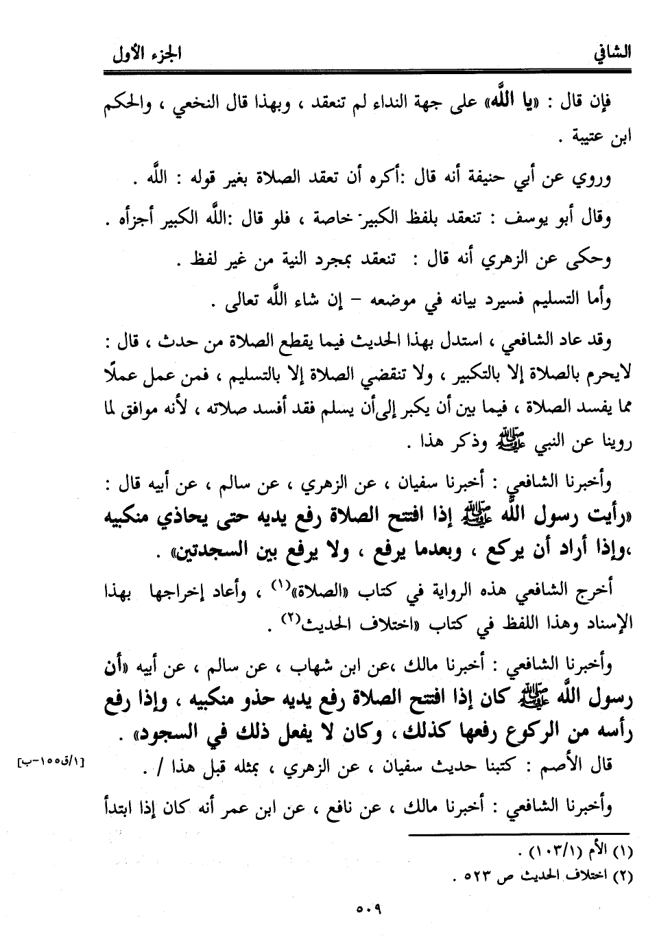 أخرج الشافعي هذه الرواية في كتاب "الصلاة" (¬1)، وأعاد إخراجها بهذا الإسناد وهذا اللفظ في كتاب "اختلاف الحديث" (¬2).