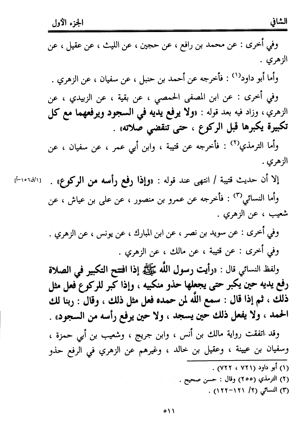 وقد اتفقت رواية مالك بن أنس، وابن جريج، وشعيب بن أبي حمزة، وسفيان بن عيينة، وعقيل بن خالد، وغيرهم عن الزهري في الرفع حذو
