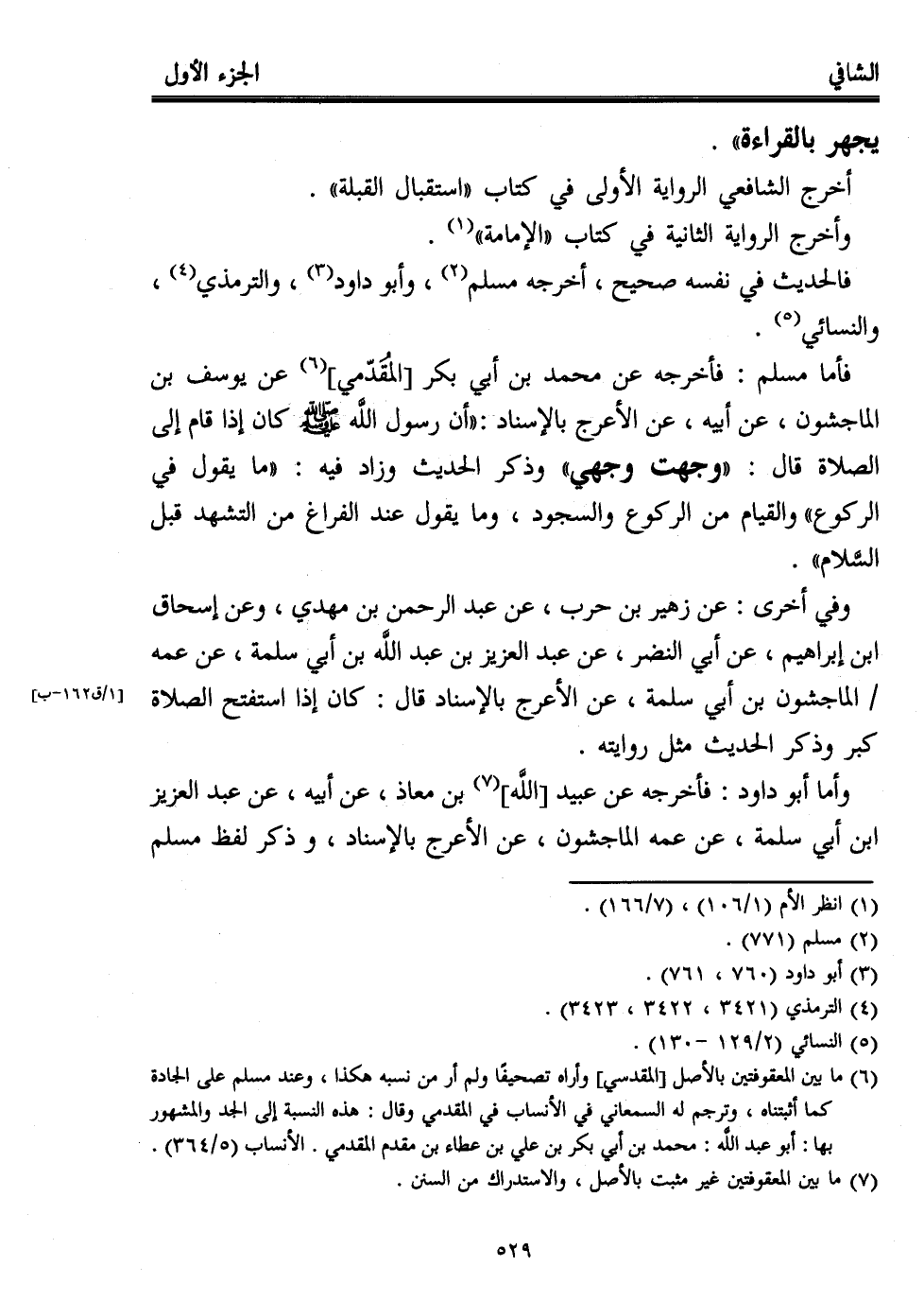 فالحديث في نفسه صحيح، أخرجه مسلم (¬2)، وأبو داود (¬3)، والترمذي (¬4)، والنسائي (¬5). فأما مسلم: فأخرجه عن محمد بن أبي بكر [المُقَدّمي] (¬6) عن يوسف بن الماجشون، عن أبيه، عن الأعرج بالإسناد: "أن رسول اللَّه - صلى الله عليه وسلم - كان إذا قام إلى الصلاة قال: "وجهت وجهي" وذكر الحديث وزاد فيه: "ما يقول في الركوع" والقيام من الركوع والسجود، وما يقول عند الفراغ من التشهد قبل السَّلام".