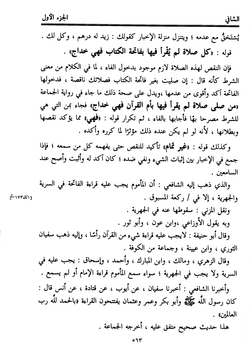 قوله: "كل صلاة لم يُقْرأ فيها بفاتحة الكتاب فهي خداج".