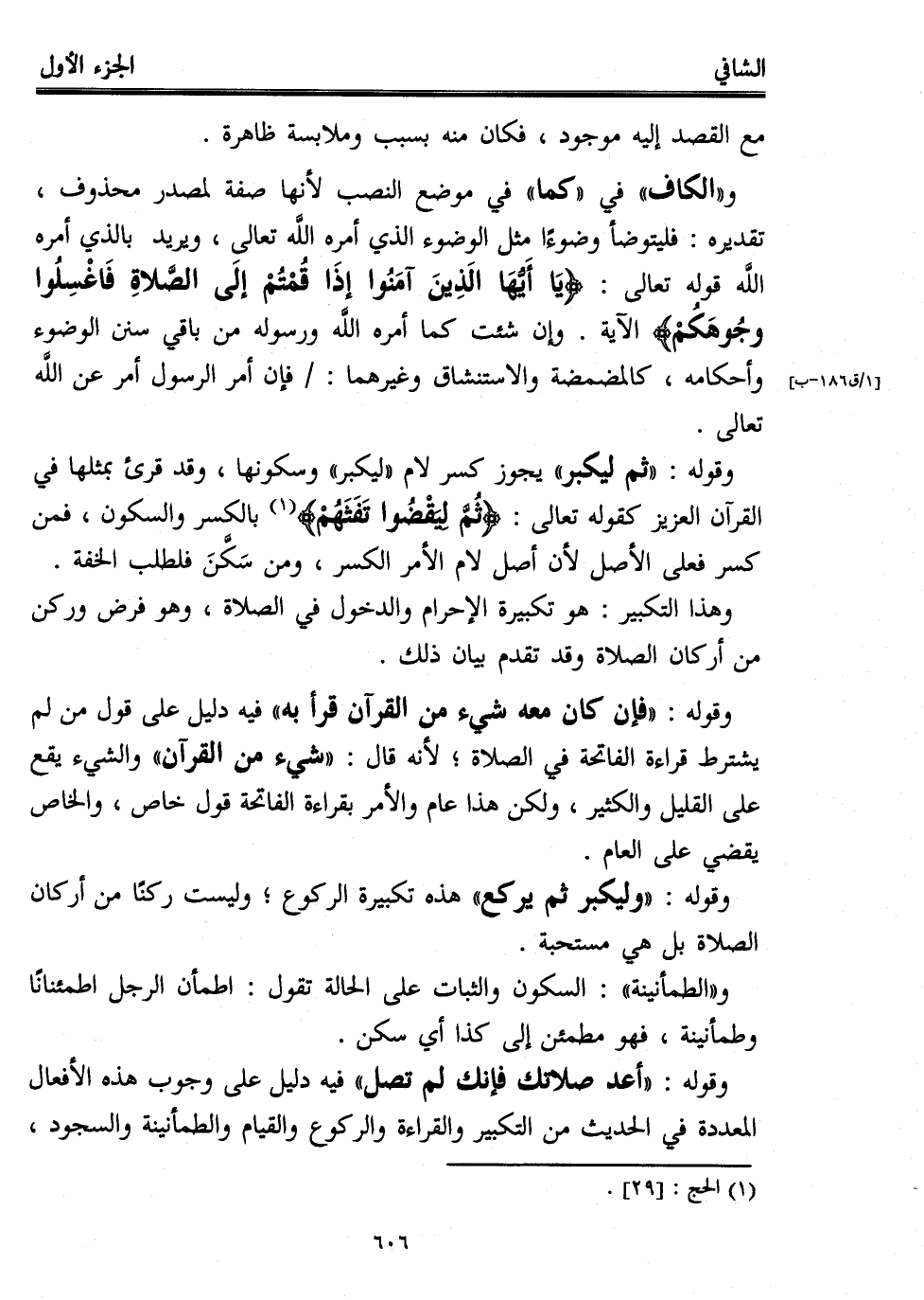 و"الطمأنينة": السكون والثبات على الحالة تقول: اطمأن الرجل اطمئنانًا وطمأنينة، فهو مطمئن إلى كذا أي سكن. وقوله: "أعد صلاتك فإنك لم تصل" فيه دليل على وجوب هذه الأفعال المعددة في الحديث من التكبير والقراءة والركوع والقيام والطمأنينة والسجود،