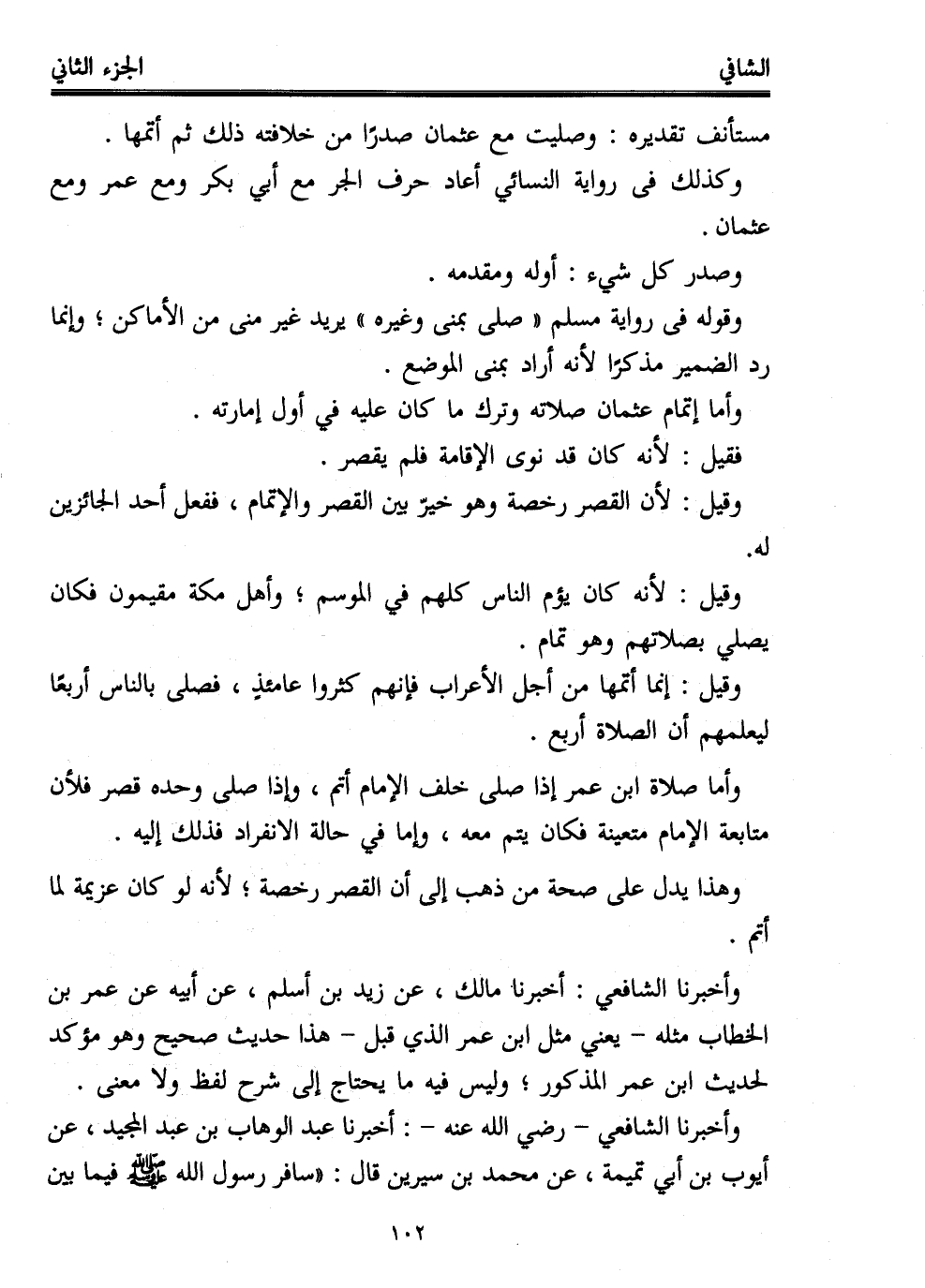 وأخبرنا الشافعي -رضي الله عنه-: أخبرنا عبد الوهاب بن عبد المجيد، عن أيوب بن أبي تميمة، عن محمد بن سيرين قال: "سافر رسول الله - صلى الله عليه وسلم - فيما بين