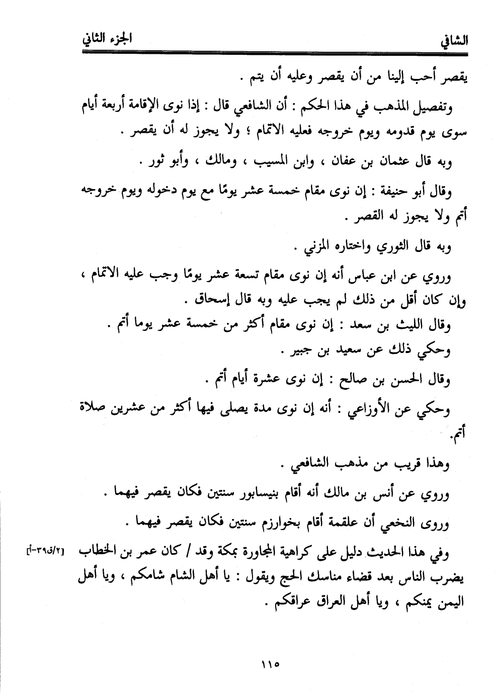 وروي عن ابن عباس أنه إن نوى مقام تسعة عشر يومًا وجب عليه الإتمام، وإن كان أقل من ذلك لم يجب عليه وبه قال إسحاق.