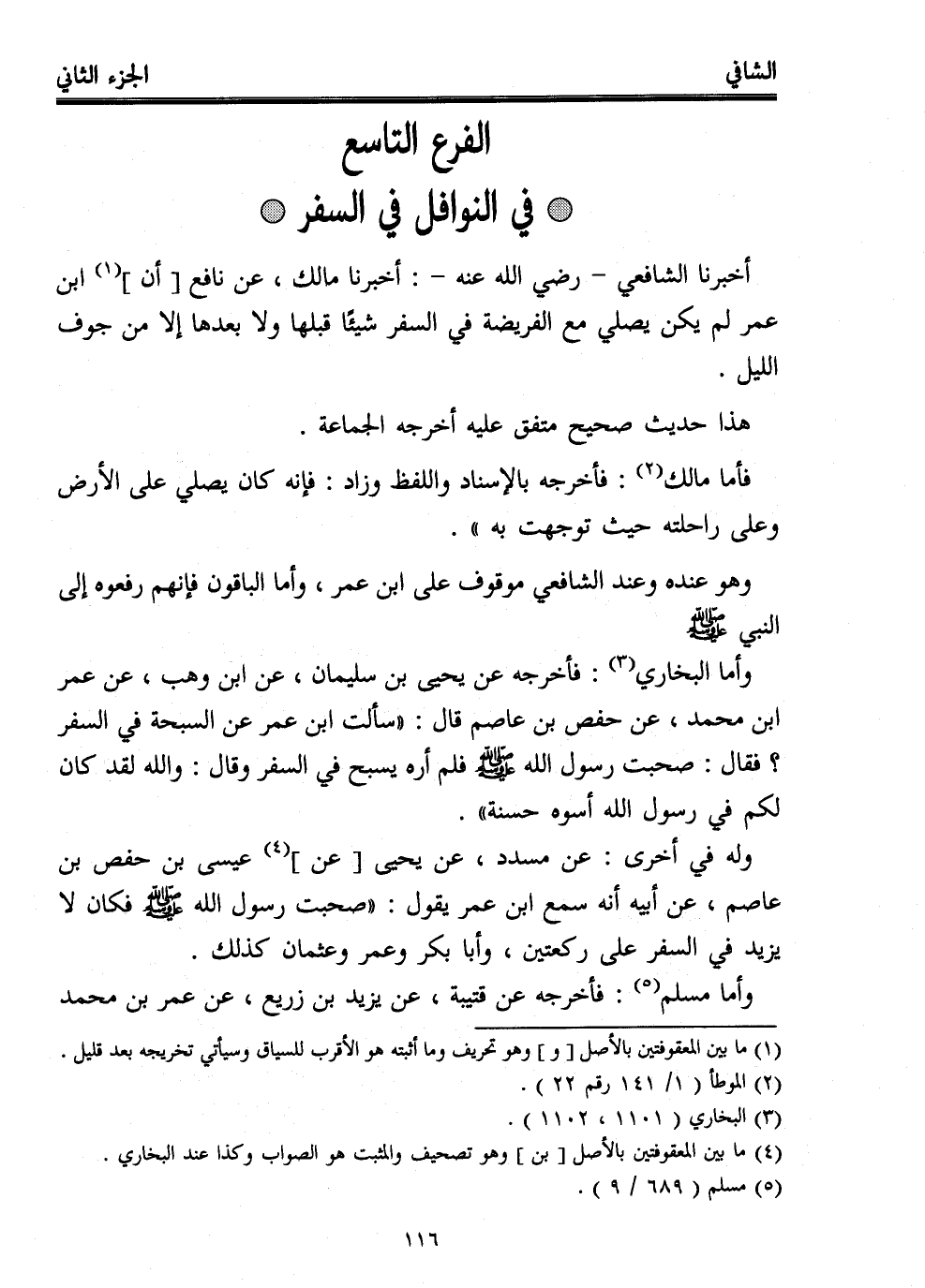 وأما البخاري (¬3): فأخرجه عن يحيى بن سليمان، عن ابن وهب، عن عمر ابن محمد، عن حفص بن عاصم قال: "سألت ابن عمر عن السبحة في السفر؟ فقال: صحبت رسول الله - صلى الله عليه وسلم - فلم أره يسبح في السفر وقال: والله لقد كان لكم في رسول الله أسوه حسنة".