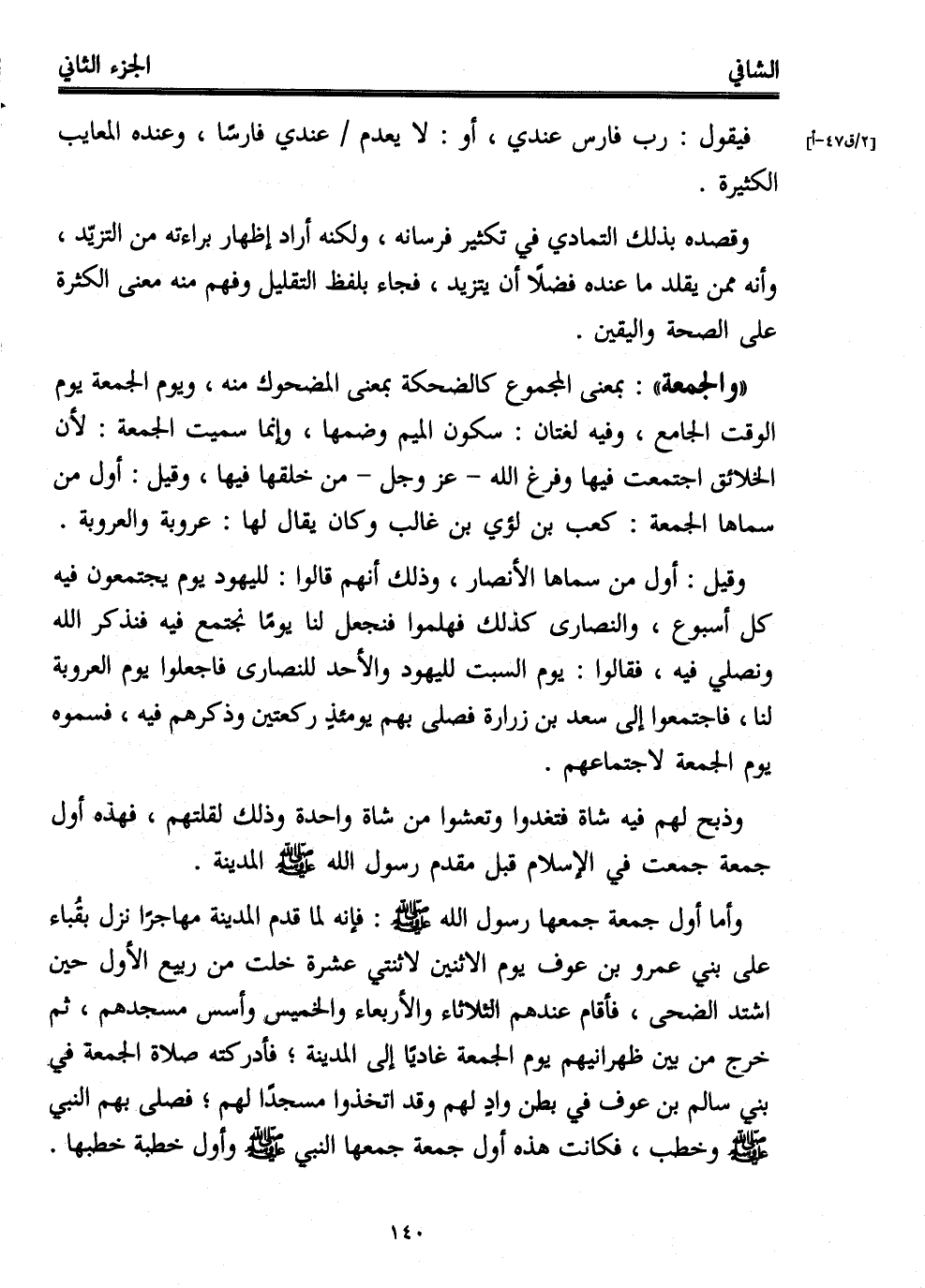 وقيل: أول من سماها الأنصار، وذلك أنهم قالوا: لليهود يوم يجتمعون فيه كل أسبوع، والنصارى كذلك فهلموا فنجعل لنا يومًا نجتمع فيه فنذكر الله ونصلي فيه، فقالوا: يوم السبت لليهود والأحد للنصارى فاجعلوا يوم العروبة لنا، فاجتمعوا إلى سعد بن زرارة فصلى بهم يومئذٍ ركعتين وذكرهم فيه، فسموه يوم الجمعة لاجتماعهم.