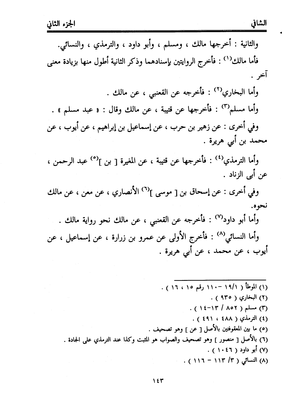 والثانية: أخرجها مالك، ومسلم، وأبو داود، والترمذي، والنسائي.
