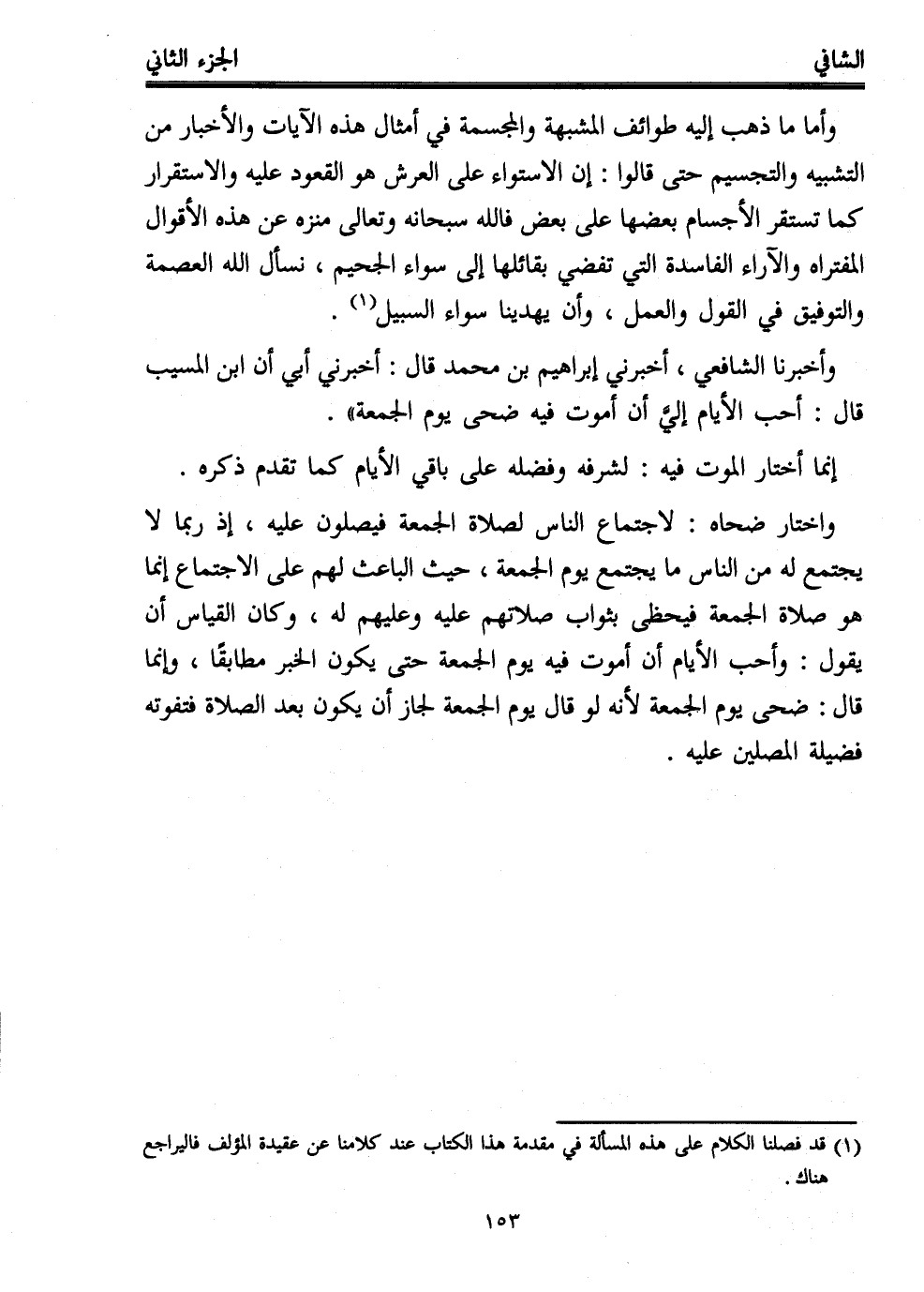 (¬1) قد فصلنا الكلام على هذه المسألة في مقدمة هذا الكتاب عند كلامنا عن عقيدة المؤلف فاليراجع هناك.