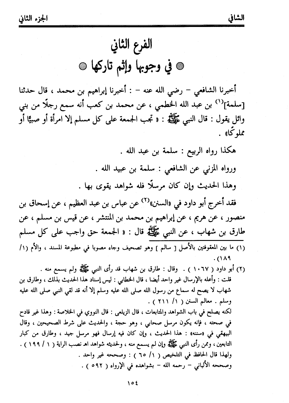 (¬2) أبو داود (1067). وقال: طارق بن شهاب قد رأى النبي - صلى الله عليه وسلم - ولم يسمع منه.