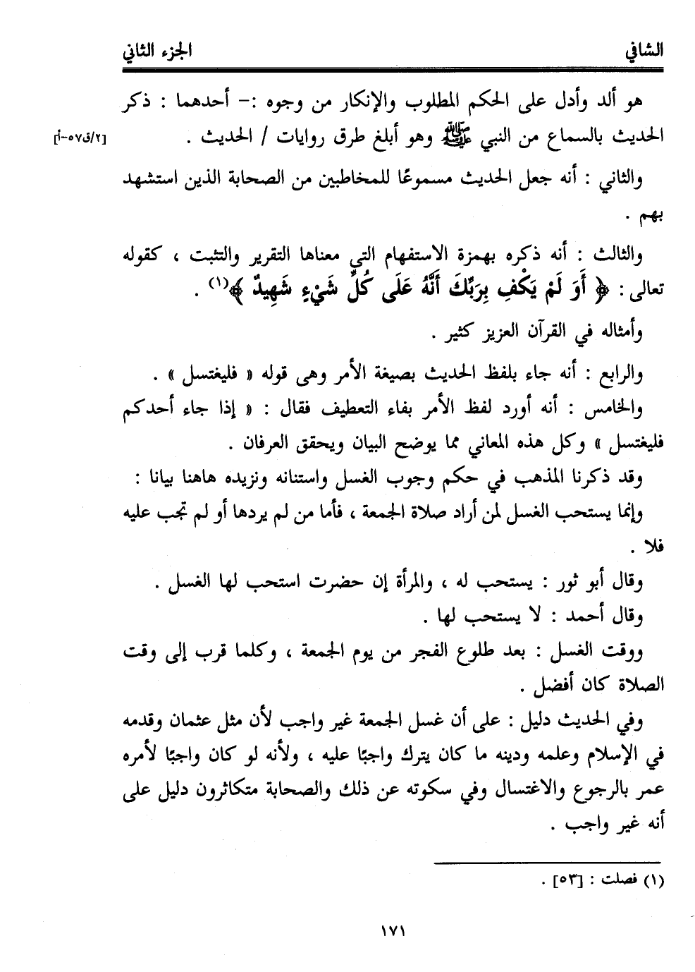 والرابع: أنه جاء بلفظ الحديث بصيغة الأمر وهي قوله "فليغتسل".