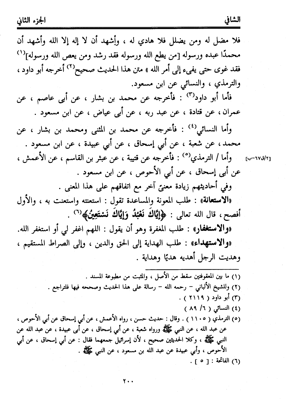 (¬5) الترمذي (1105). وقال: حديث حسن، رواه الأعمش، عن أبي إسحاق عن أبي الأحوص، عن عبد الله، عن النبي - صلى الله عليه وسلم - ورواه شعبة، عن أبي إسحاق، عن أبي عبيدة، عن عبد الله عن النبي - صلى الله عليه وسلم -، وكلا الحديثين صحيح، لأن إسرائيل جمعهما فقال: عن أبي إسحاق، عن أبي الأحوص، وأبي عبيدة عن عبد الله بن مسعود، عن النبي - صلى الله عليه وسلم -.