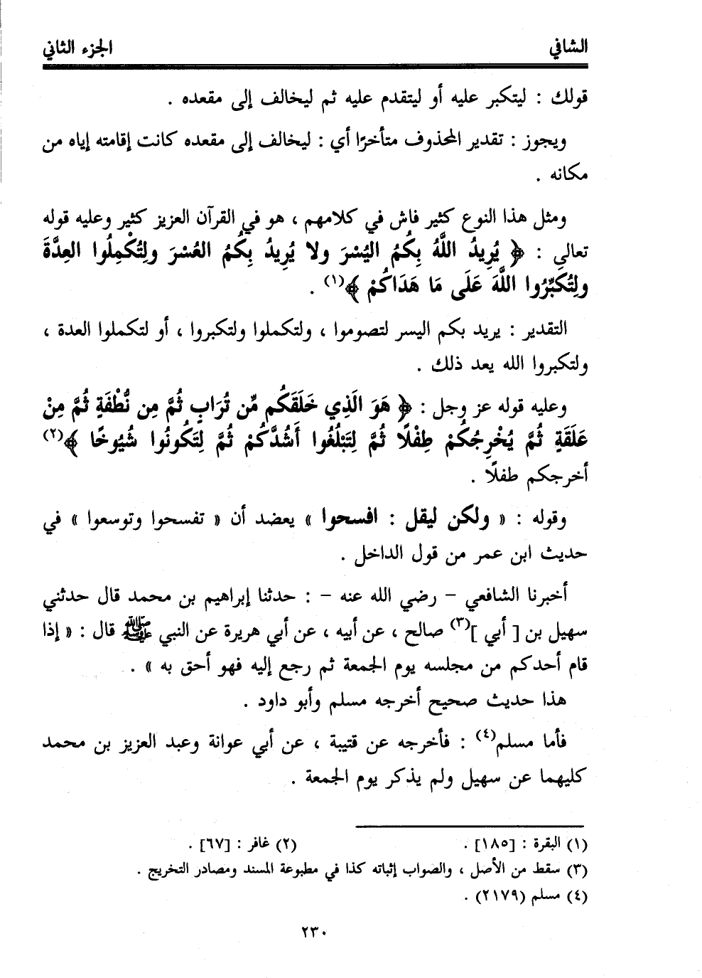 ومثل هذا النوع كثير فاش في كلامهم، هو في القرآن العزيز كثير وعليه قوله تعالى: {يُرِيدُ اللَّهُ بِكُمُ الْيُسْرَ وَلَا يُرِيدُ بِكُمُ الْعُسْرَ وَلِتُكْمِلُوا الْعِدَّةَ وَلِتُكَبِّرُوا اللَّهَ عَلَى مَا هَدَاكُمْ} (¬1).