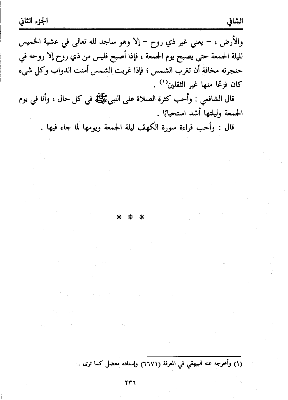 قال الشافعي: وأحب كثرة الصلاة على النبي - صلى الله عليه وسلم - في كل حال، وأنا في يوم الجمعة وليلتها أشد استحبابًا.