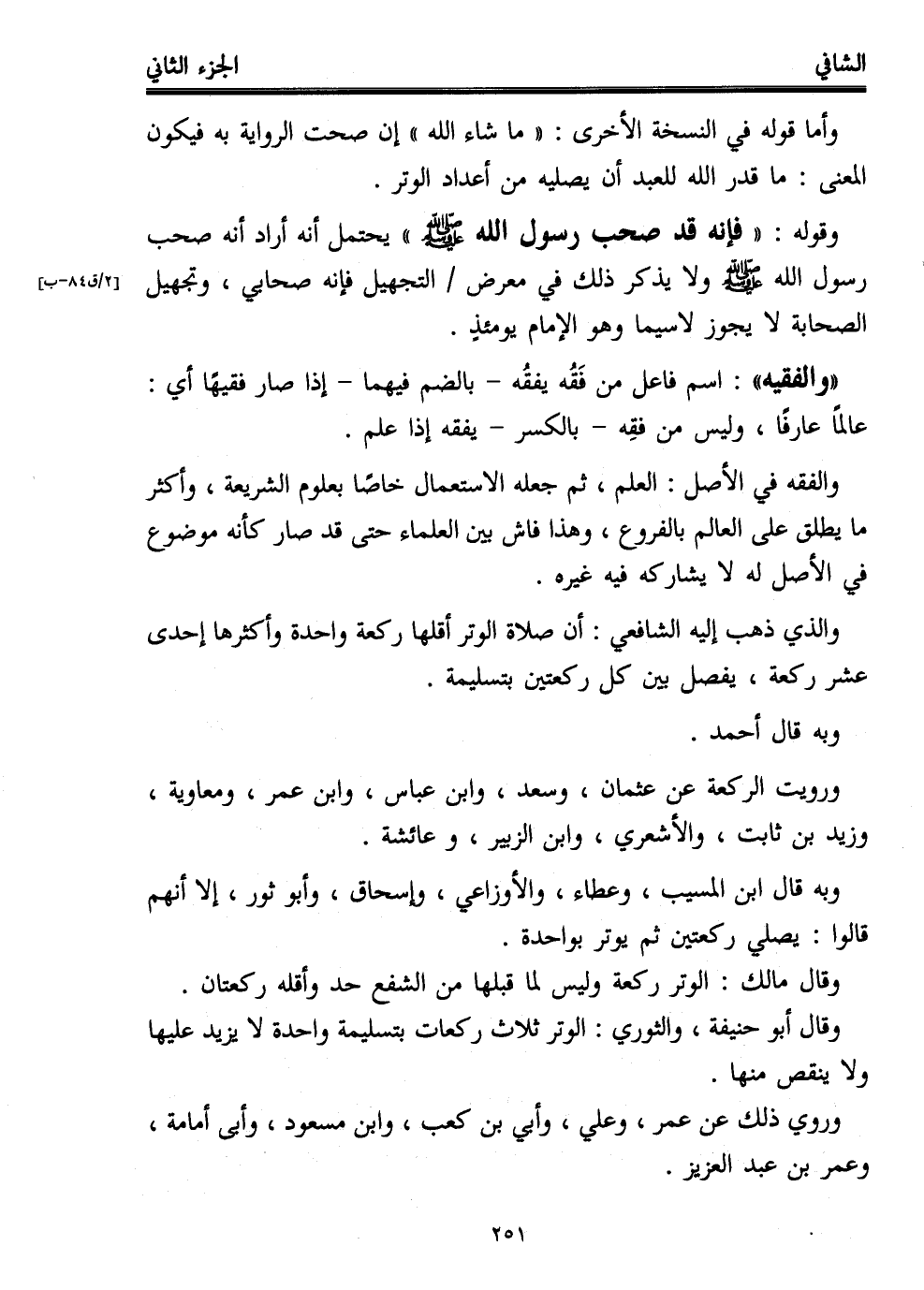 ورويت الركعة عن عثمان، وسعد، وابن عباس، وابن عمر، ومعاوية، وزيد بن ثابت، والأشعري، وابن الزبير، وعائشة.