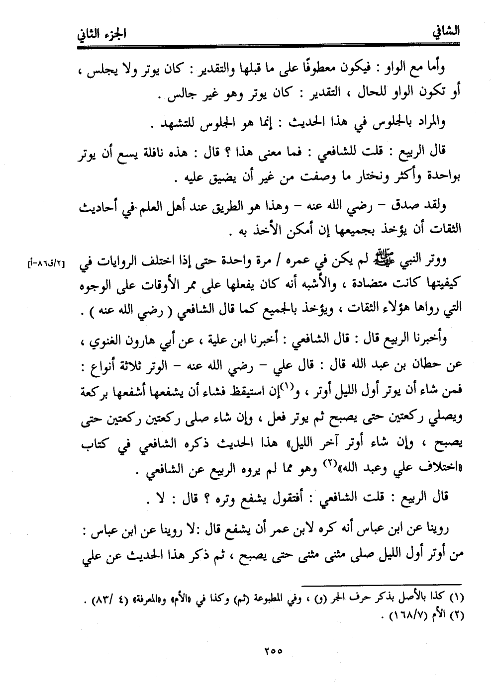 قال الربيع: قلت الشافعي: أفتقول يشفع وتره؟ قال: لا.