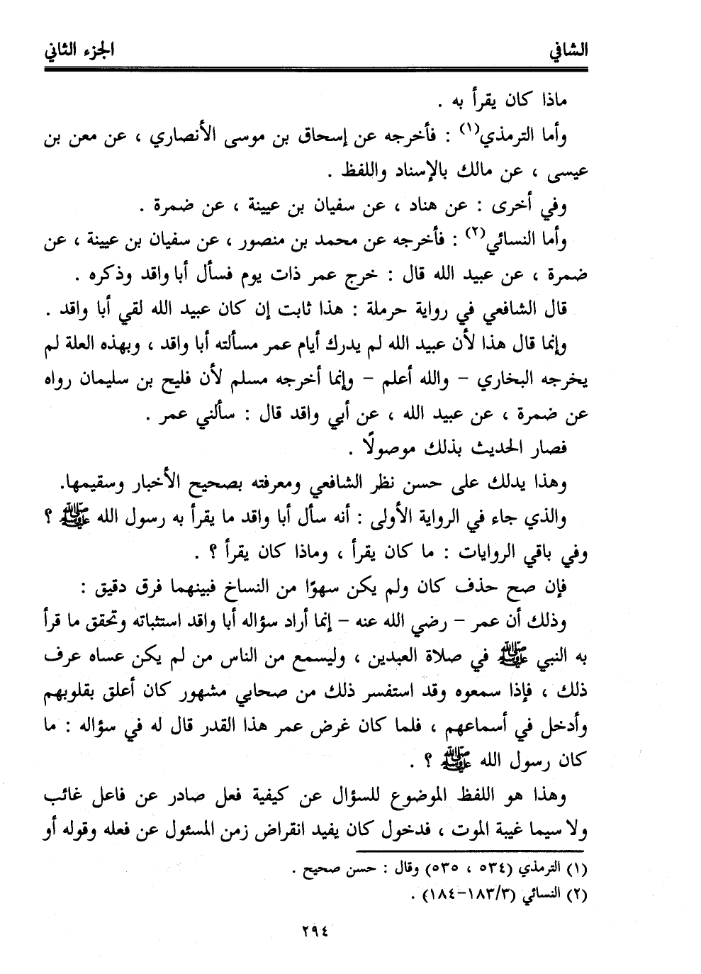 والذي جاء في الرواية الأولى: أنه سأل أبا واقد ما يقرأ به رسول الله - صلى الله عليه وسلم -؟ وفي باقي الروايات: ما كان يقرأ، وماذا كان يقرأ؟.