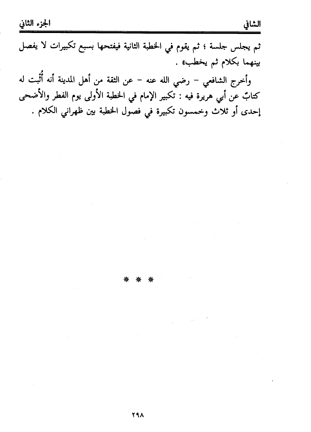 وأخرج الشافعي -رضي الله عنه- عن الثقة من أهل المدينة أنه أُثْبت له كتابٌ عن أبي هريرة فيه: تكبير الإمام في الخطبة الأولى يوم الفطر والأضحى إحدى أو ثلاث وخمسون تكبيرة في فصول الخطبة بين ظهراني الكلام.