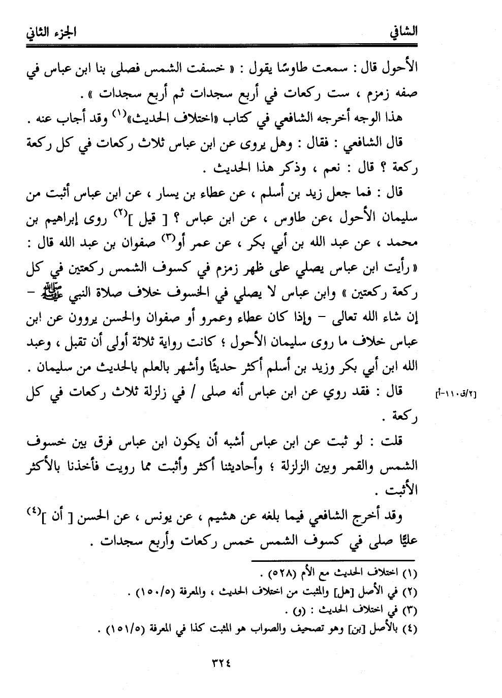 قلت: لو ثبت عن ابن عباس أشبه أن يكون ابن عباس فرق بين خسوف الشمس والقمر وين الزلزلة؛ وأحاديثنا أكثر وأثبت مما روسا فأخذنا بالأكثر الأثبت.