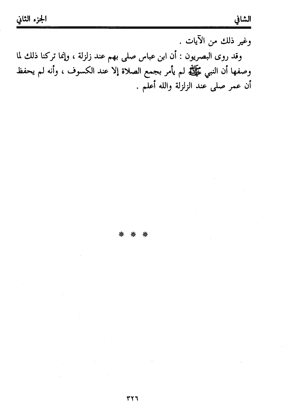 وقد روى البصريون: أن ابن عباس صلى بهم عند زلزلة، وإنما تركنا ذلك لما وصفها أن النبي - صلى الله عليه وسلم - لم يأمر بجمع الصلاة إلا عند الكسوف، وأنه لم يحفظ أن عمر صلى عند الزلزلة والله أعلم.