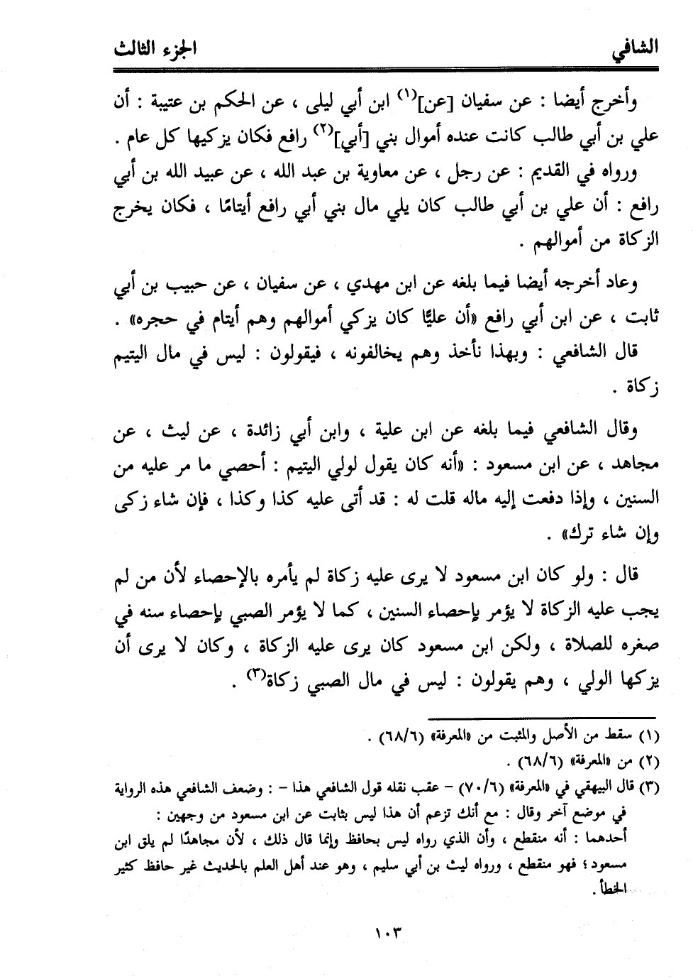 وعاد أخرجه أيضًا فيما بلغه عن ابن مهدي، عن سفيان، عن حبيب بن أبي ثابت، عن ابن أبي رافع "أن عليًّا كان يزكي أموالهم وهم أيتام في حجره".