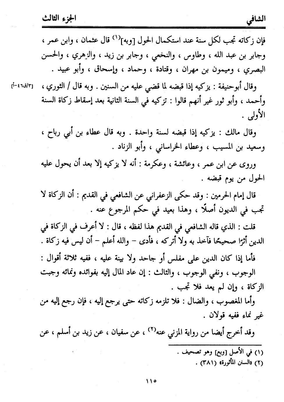 فإن زكاته تجب لكل سنة عند استكمال الحول [وبه] (¬1) قال عثمان، وابن عمر، وجابر بن عبد الله، وطاوس، والنخعي، وجابر بن زيد، والزهري، والحسن البصري، وميمون بن مهران، وقتادة، وحماد، وإسحاق، وأبو عبيد.