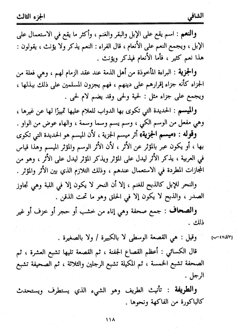 وقوله: "ميسم الجزية" أثر ميسم الجزية، لأن الميسم هو الحديدة التي تكوى بها، أو يكون عبر بالمؤثر عن الأثر، لأن الأثر الوسم والمؤثر الميسم وهذا قياس في العربية، يذكر الأثر ليدل على المؤثر ويذكر المؤثر ليدل على الأثر، وهو من المجازات المطردة في الاستعمال عندهم، وذلك التلازم الذي بين الأثر والمؤثر.