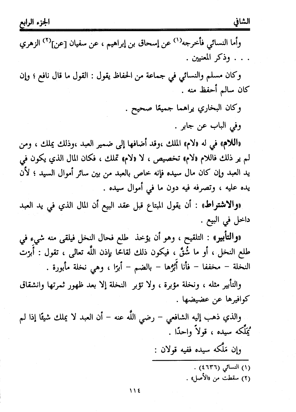 "والاشتراط": أن يقول المبتاع قبل عقد البيع أن المال الذي في يد العبد داخل في البيع.