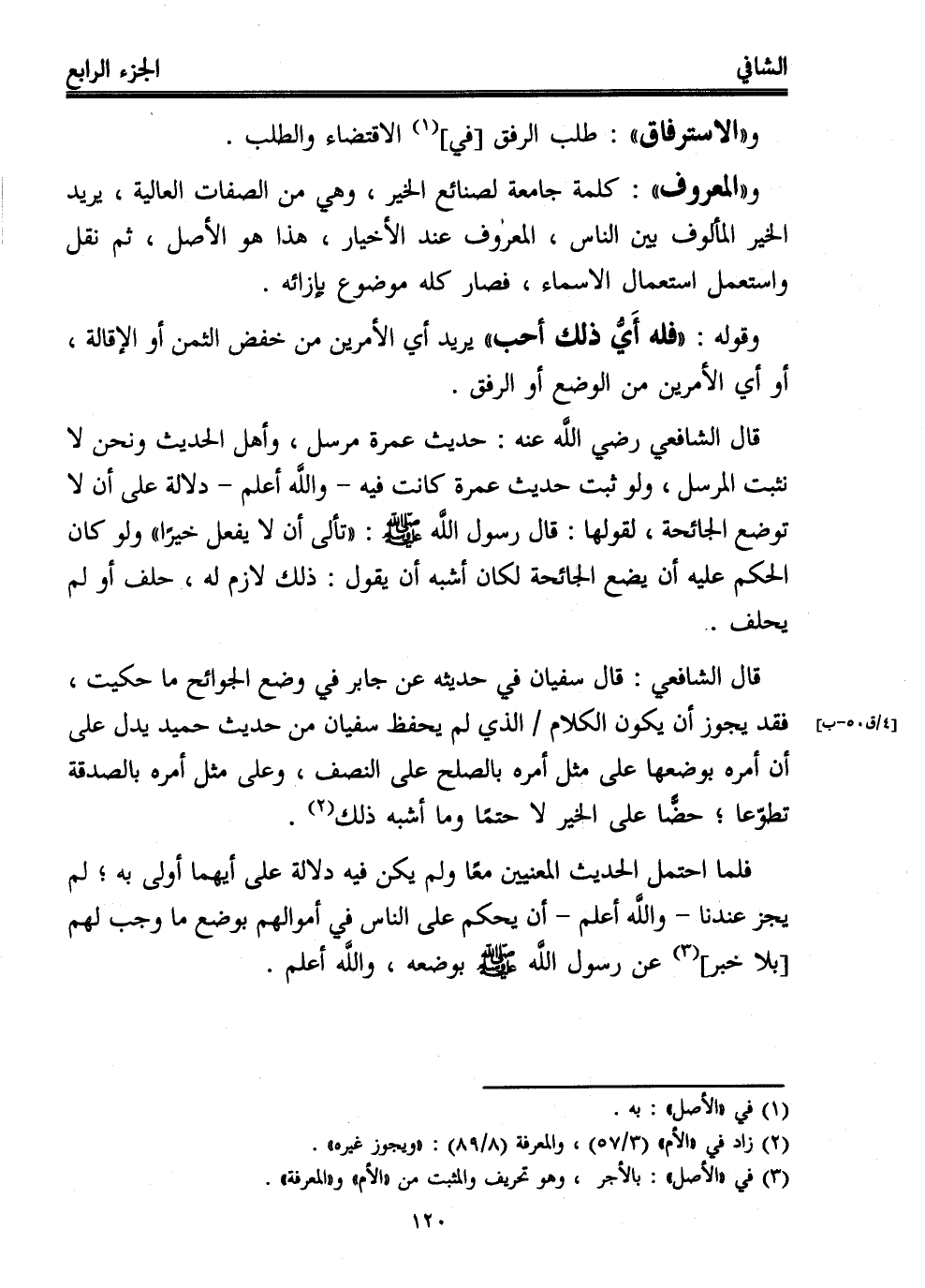 قال الشافعي: قال سفيان في حديثه عن جابر في وضع الجوائح ما حكيت، فقد يجوز أن يكون الكلام الذي لم يحفظ سفيان من حديث حميد يدل على أن أمره بوضعها على مثل أمره بالصلح على النصف، وعلى مثل أمره بالصدقة تطوّعا؛ حضُّا على الخير لا حتمًا وما أشبه ذلك (¬2).