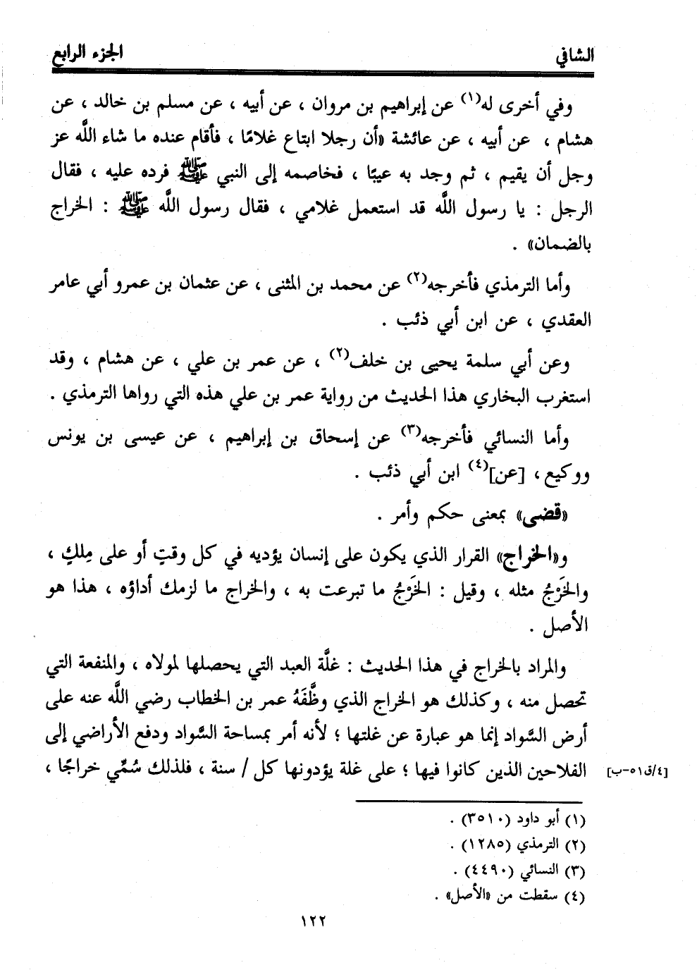 والمراد بالخراج في هذا الحديث: غلَّة العبد التي يحصلها لمولاه، والمنفعة التي تحصل منه، وكذلك هو الخراج الذي وظَّفَهُ عمر بن الخطاب -رضي الله عنه- على أرض السَّواد إنما هو عبارة عن غلتها؛ لأنه أمر بمساحة السَّواد ودفع الأراضي إلى الفلاحين الذين كانوا فيها؛ على غلة يؤدونها كل سنة، فلذلك سُمِّي خراجًا،