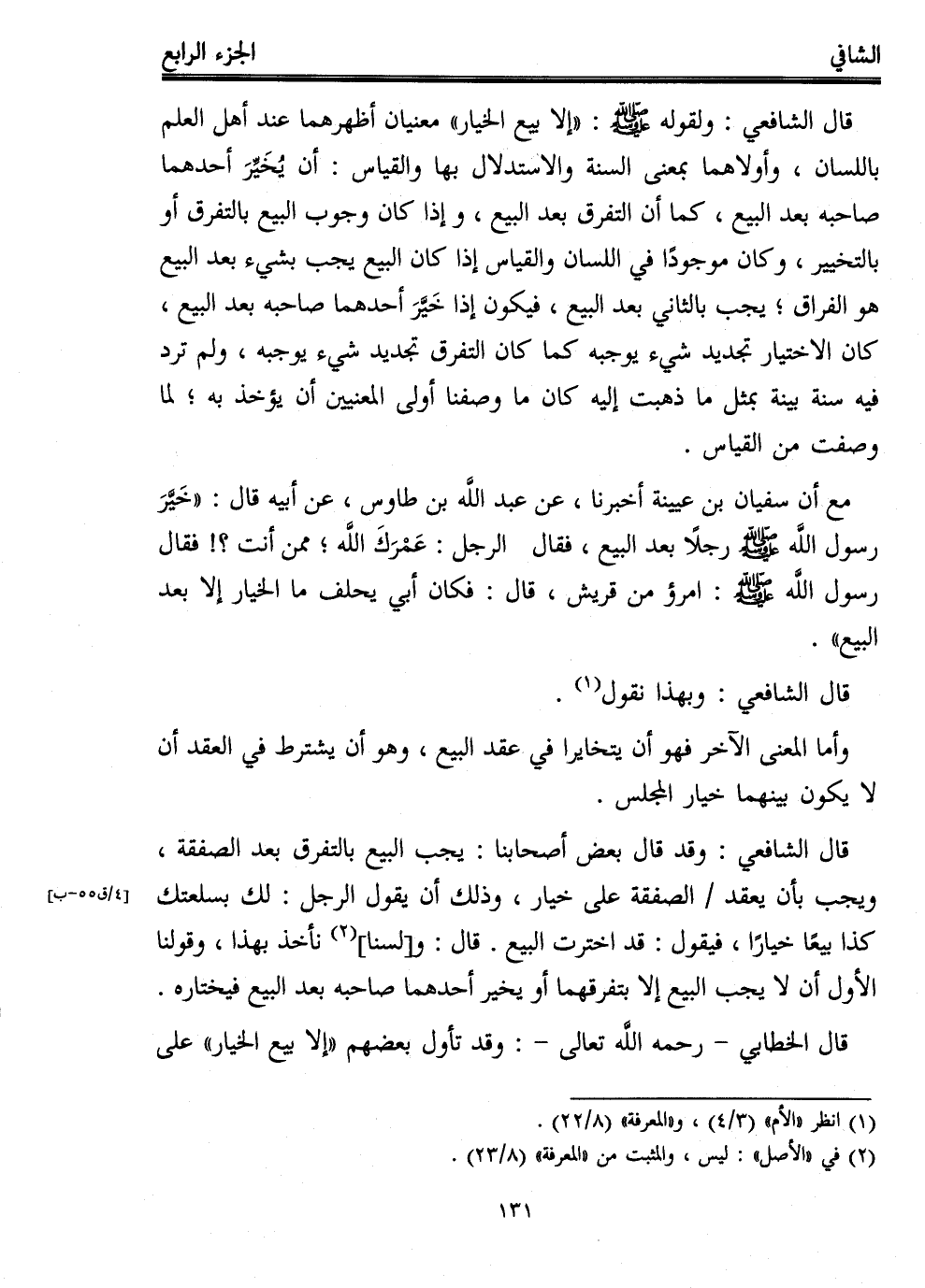 (¬1) انظر "الأم" (3/ 4)، و"المعرفة" (8/ 22).
