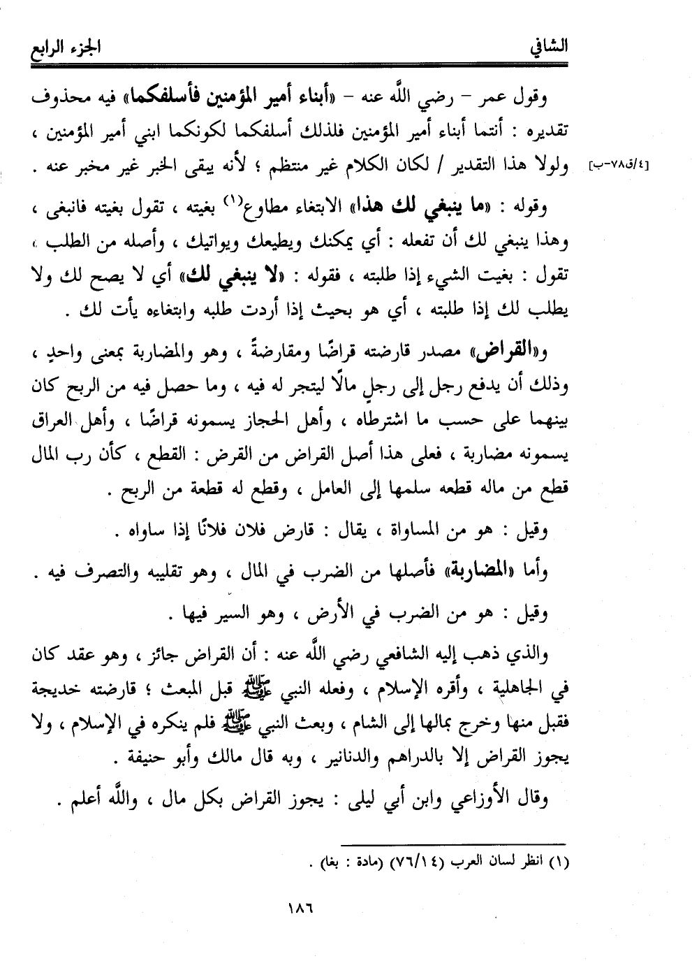 وقول عمر -رضي الله عنه- "أبناء أمير المؤمنين فأسلفكما" فيه محذوف تقديره: أنتما أبناء أمير المؤمنين فلذلك أسلفكما لكونكما ابني أمير المؤمنين، ولولا هذا التقدير لكان الكلام غير منتظم؛ لأنه يبقى الخبر غير مخبر عنه.