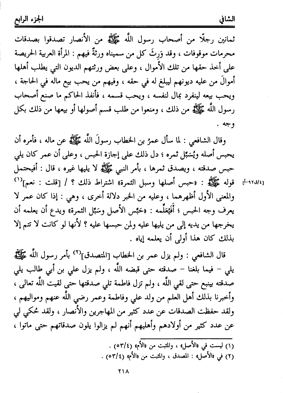 قال الشافعي: ولم يزل عمر بن الخطاب [المتصدق] (¬2) بأمر رسول الله - صلى الله عليه وسلم -