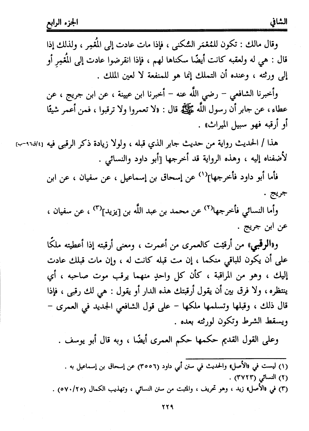 هذا الحديث رواية من حديث جابر الذي قبله، ولولا زيادة ذكر الرقبى فيه لأضفناه إليه، وهذه الرواية قد أخرجها [أبو داود والنسائي.
